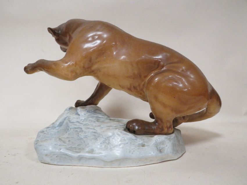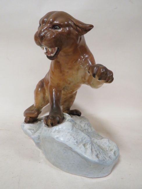 A BESWICK 1702 GLOSS FINISH PUMA ON A ROCK FIGURE
