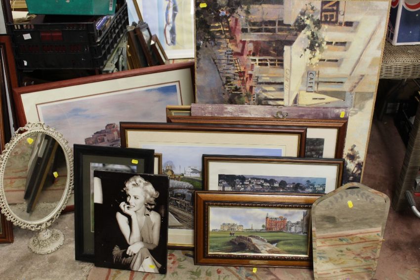 A COLLECTION OF ASSORTED PICTURES AND PRINTS TO INCLUDE LOCOMOTIVE INTEREST ETC