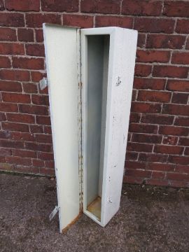 A HEAVY DUTY STEEL GUN CABINET PAINTED WHITE
