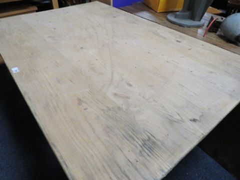 A VINTAGE PINE RECTANGULAR KITCHEN TABLE WITH SINGLE DRAWER H-76 CM L-135 CM