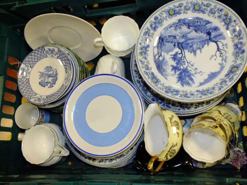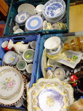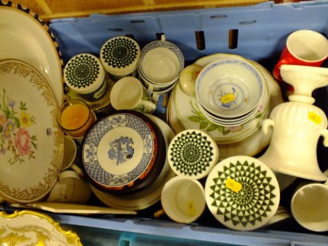 THREE TRAYS OF ASSORTED CERAMICS ETC. (PLASTIC TRAYS NOT INCLUDED)