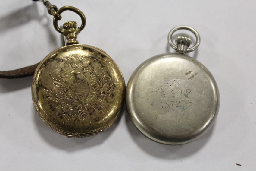 A MILITARY ORIS POCKETWATCH, TOGETHER WITH A GOLD PLATED FULL HUNTER ELGIN POCKET WATCH (2)