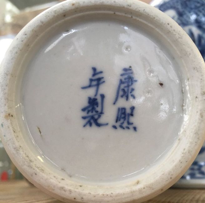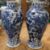 A PAIR OF CHINESE BLUE AND WHITE VASES WITH FOUR CHARACTER MARK UNDER GLAZED MARK TO BASE, HAND PAINTED WITH FACING DRAGONS