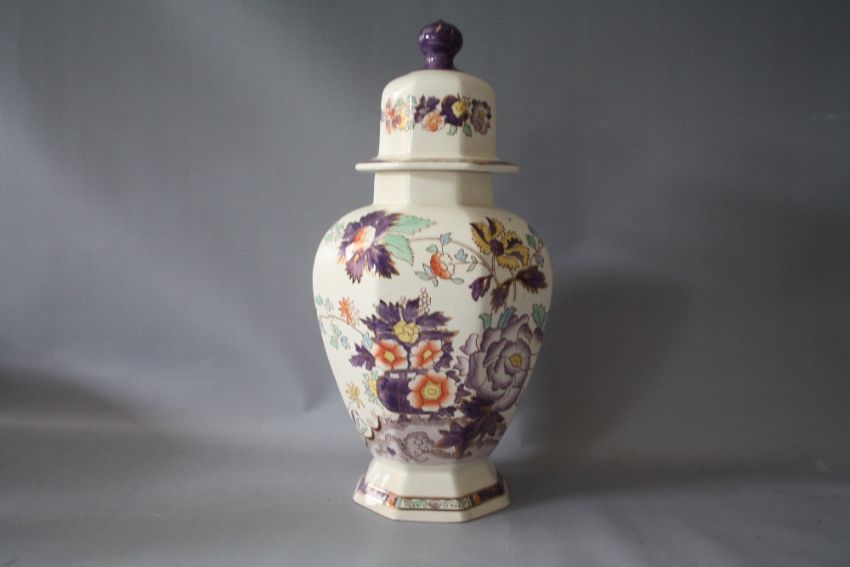 A LARGE MASONS IRONSTONE 'AMETHYST' OCTAGONAL LIDDED JAR, H 39 cm