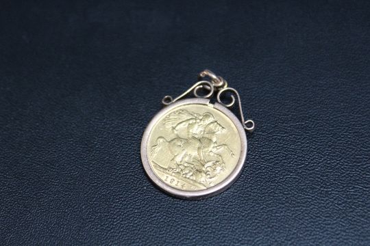 A KING GEORGE V 1914 FULL SOVEREIGN IN 9 CARAT GOLD MOUNT, approx weight 9.7g