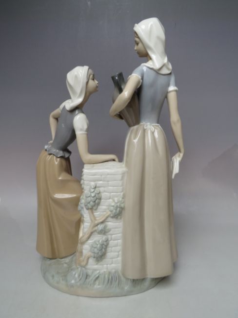 A LARGE NAO FIGURINE OF TWO LADIES COLLECTING WATER, H 39 cm, S/D