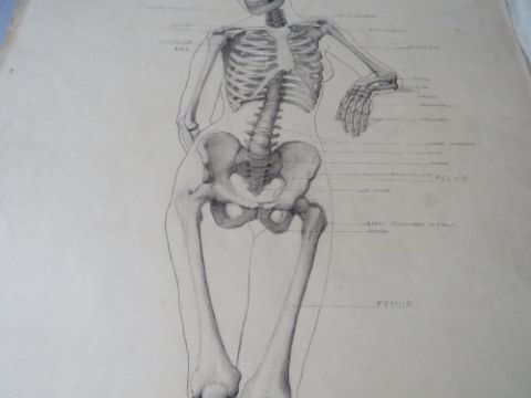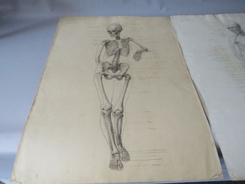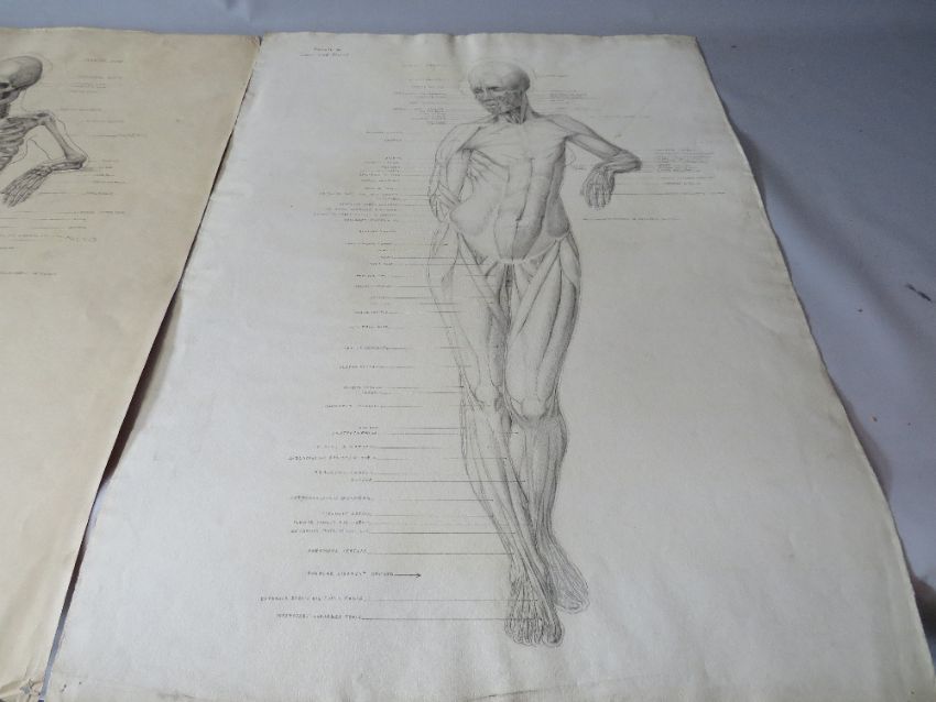 UNA HOOK (b.1900). A pair of female anatomical studies, one muscular, the other skeletal, signed verso, pencil on paper, unframed, 78 x 56 cm