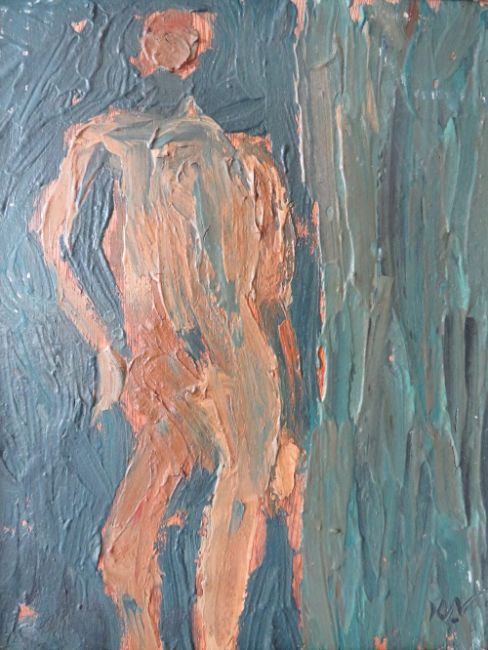 K.N. (XX). Impressionist figure study, signed with initials lower right, oil on board, framed, 34 x 29 cm