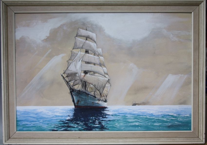 BARRY MASON (1947). Seascape with sailing boats, signed lower right, oil on board, framed, 45 x 67 cm