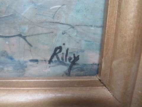 AFTER HAROLD RILEY (b.1934). Impressionist street scene, bears signature lower right, oil on canvas laid on panel framed and glazed, 19 x 13 cm