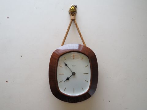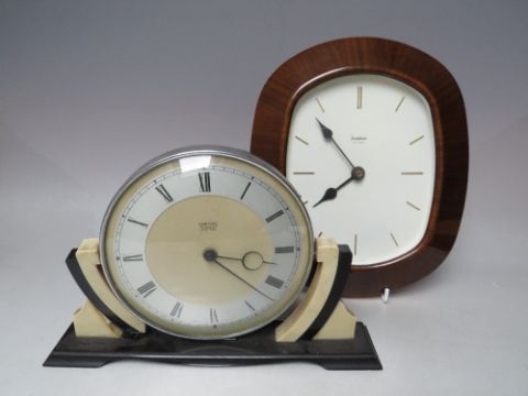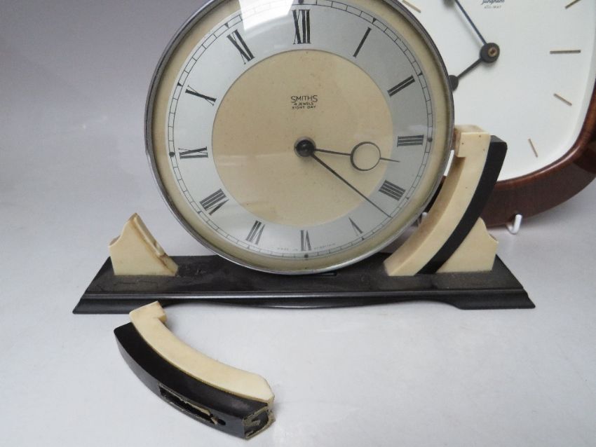 A MID 20TH CENTURY JUNGHANS ATO MAT WALL CLOCK, clock H 25 cm, inc hanger 43 cm, together with a Smiths Art Deco bakelite mantle clock for restoration (2)