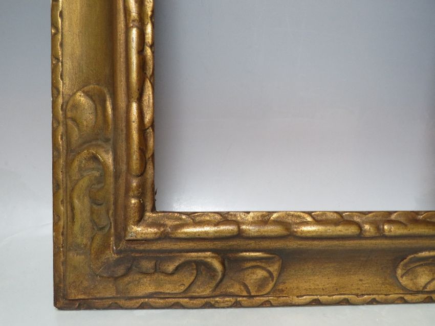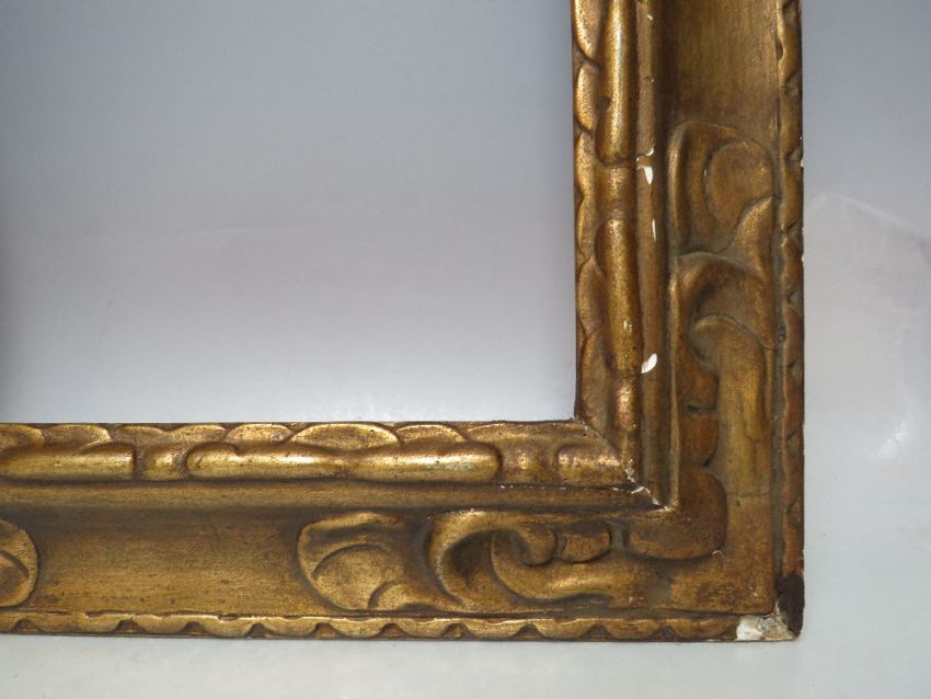 A LATE 19TH / EARLY 20TH CENTURY DECORATIVE GOLD FRAME, frame W 9 cm, rebate 43 x 35 cm