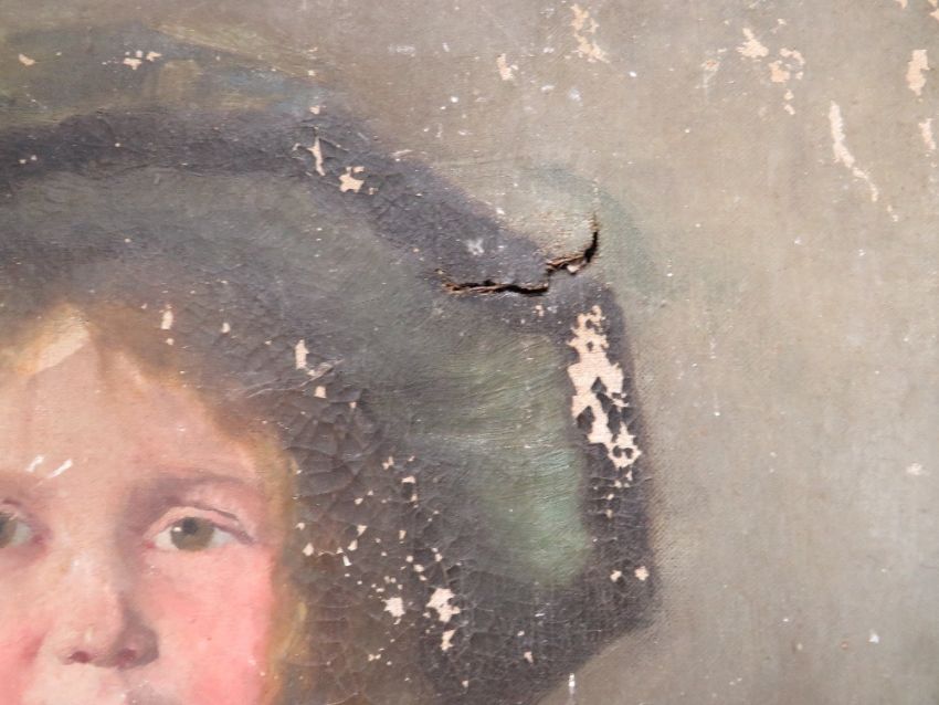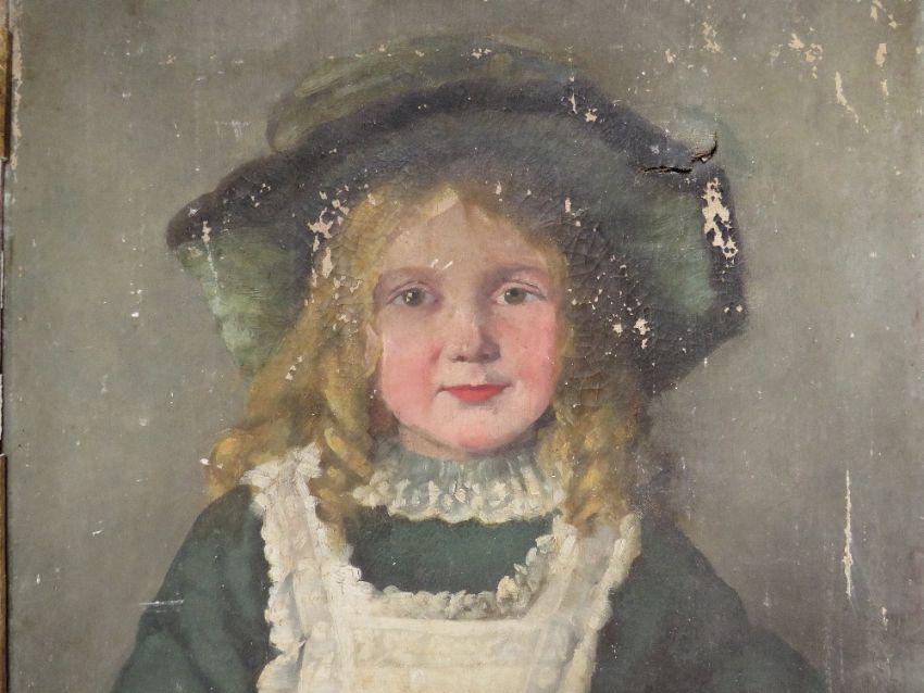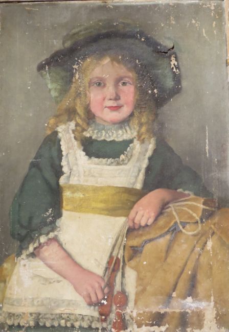 (XIX). A portrait study of a seated young girl with skipping rope, unsigned, oil on canvas, framed, A/F, 60 x 42 cm