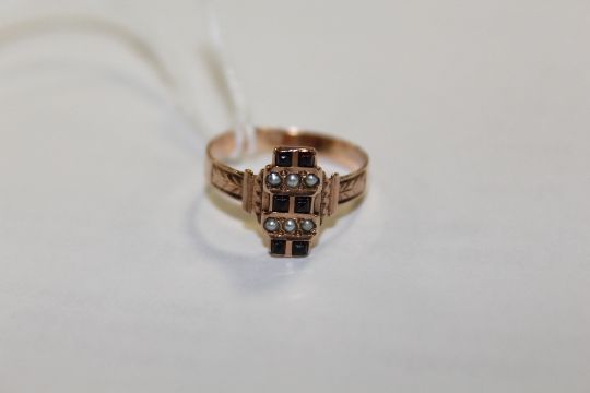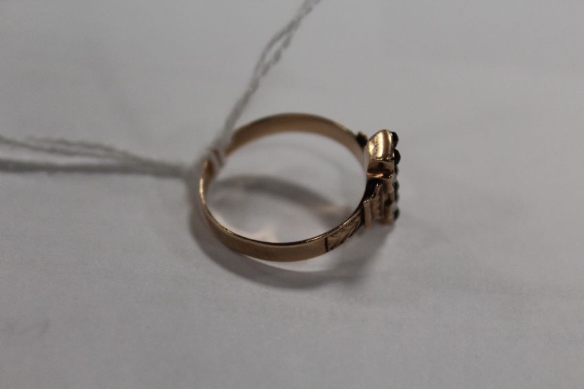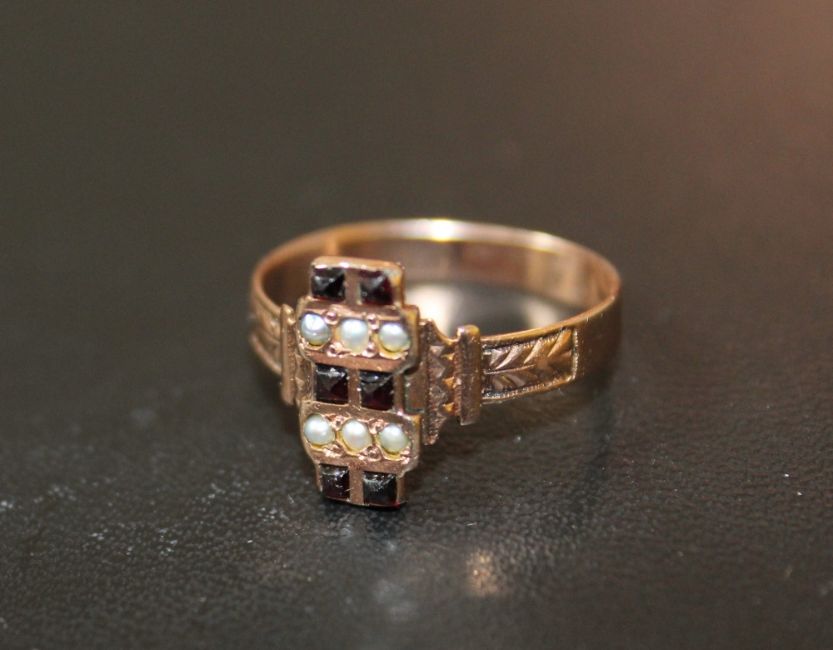 A GEORGIAN STYLE ROSE GOLD RING, set with garnets and seed pearls, approx weight 2g, ring size P