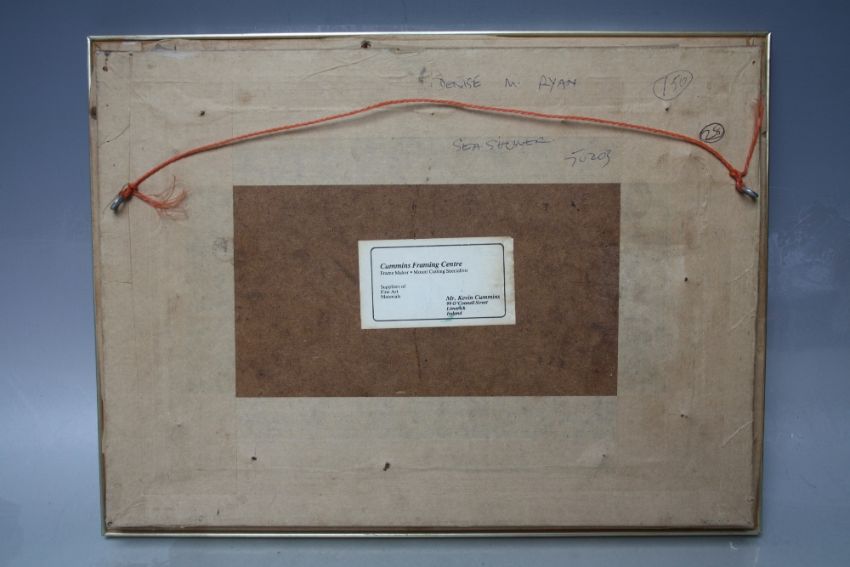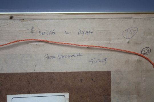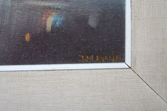 DENISE M. RYAN (XX). Abstract composition 'Sea Showers' see verso, signed lower right, oil on canvas laid on board, framed, 19 x 29 cm