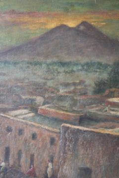 SCHOOL OF RICHARD WILSON (1713-1782). Continental town scene with figures before Mount Vesuvius 'Napoli Veduta Del Golfo', see label verso, bears signature and date 1751 lower left, oil on canvas, unframed, 76 x 63 cm