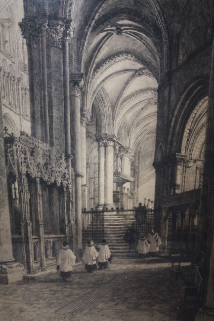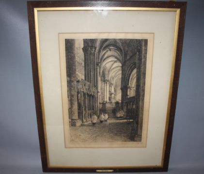 AXEL HERMAN HAIG (1835-1921). Interior scene of Canterbury Cathedral, signed lower left, etching, framed and glazed, 50 x 36 cm