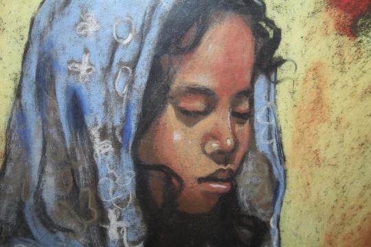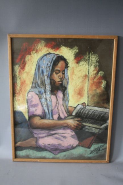 SAPTO HOEDOJO (XX). A portrait study of a young Indonesian woman reading, signed and dated 1948 lower right, pastel on paper, framed and glazed, 47 x 37 cm
