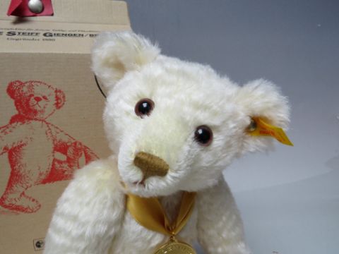 A STEIFF YEAR BEAR 'THE MILLENNIUM BEAR' 654701, button in ear with yellow tag, serial no 17509, in original Steiff box with tags and certificate of authenticity, H 30 cm