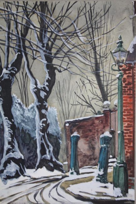 H. STEGGLES (XX). Winters street scene with lamppost, signed lower left, watercolour, unframed, 34 x 23 cm