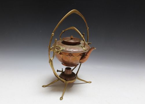 A WMF COPPER AND BRASS SPIRIT KETTLE ON STAND, H 39 cm