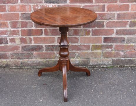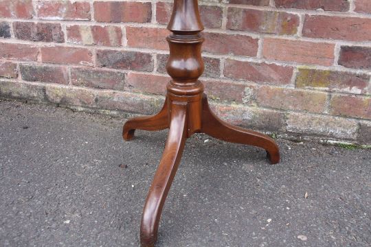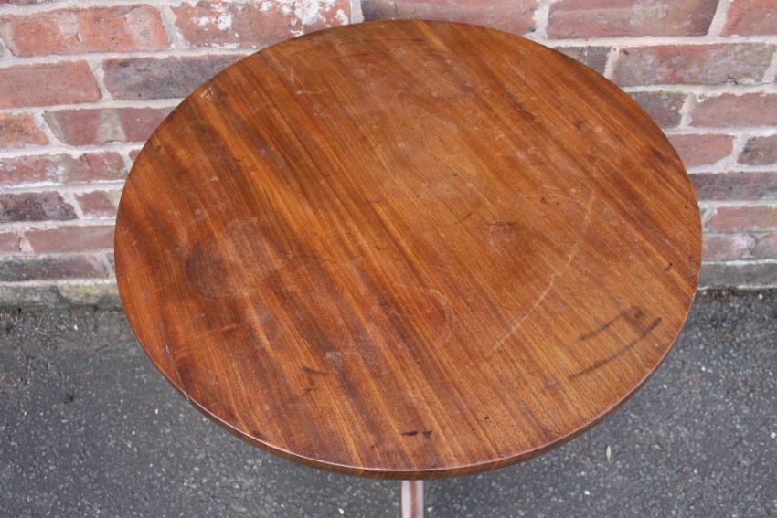A 19TH CENTURY MAHOGANY PEDESTAL TABLE, the fixed circular top supported on a turned column and tripod support, H 70 cm, Dia. 60 cm