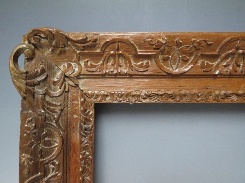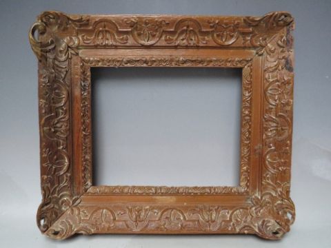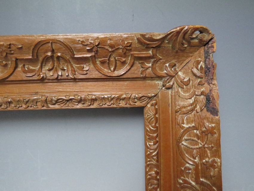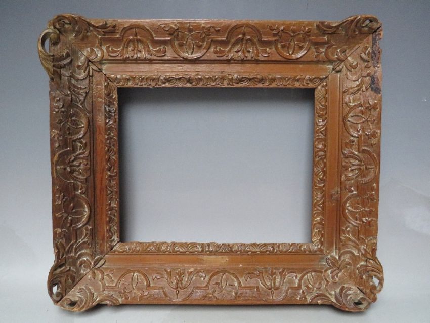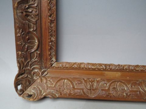 A LATE 18TH / EARLY 19TH CENTURY DECORATIVE CARVED WOODEN FRAME, some damages, frame W 9 cm, rebate 31 x 24 cm