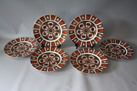 A SET OF SIX ROYAL CROWN DERBY IMARI PATTERN 1128 DINNER PLATES, all marked as seconds, Dia. 27 cm