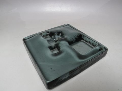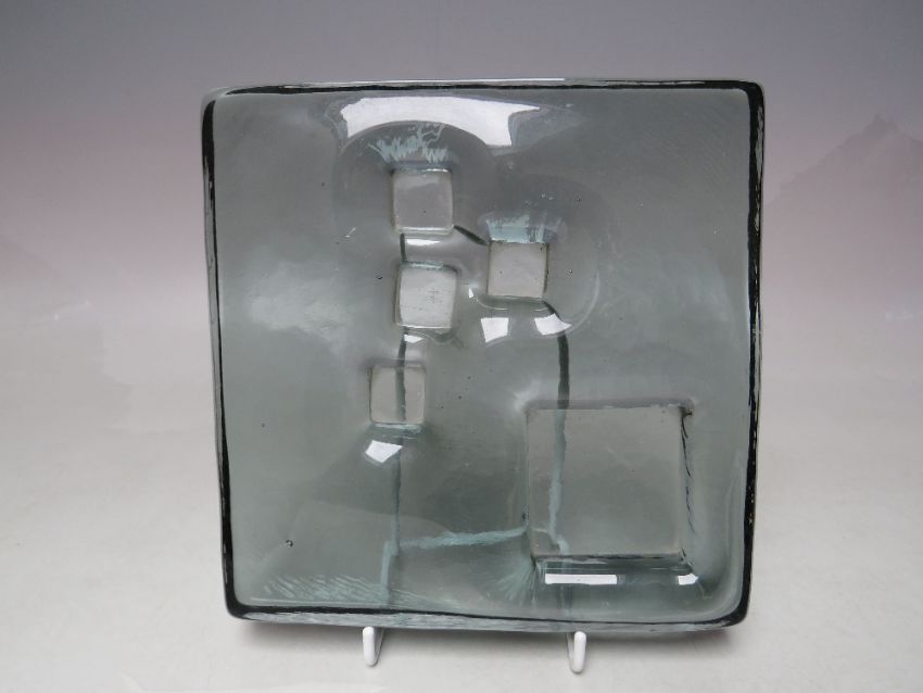 A MID 20TH CENTURY WHITEFRIARS ARCHITECTURAL GLASS SLAB, of modernist design / form, 17.5 cm, x 17.5 cm, x 3 cm