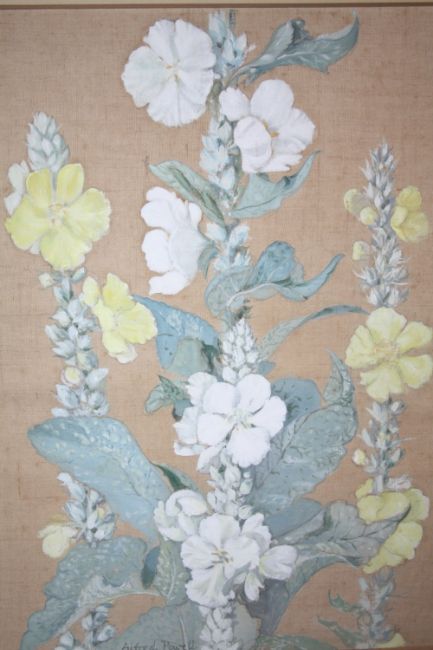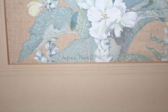 ALFRED POWELL (XX). Still life study of flowers, signed lower left to middle, watercolour on silk, unframed, 33 x 24 cm