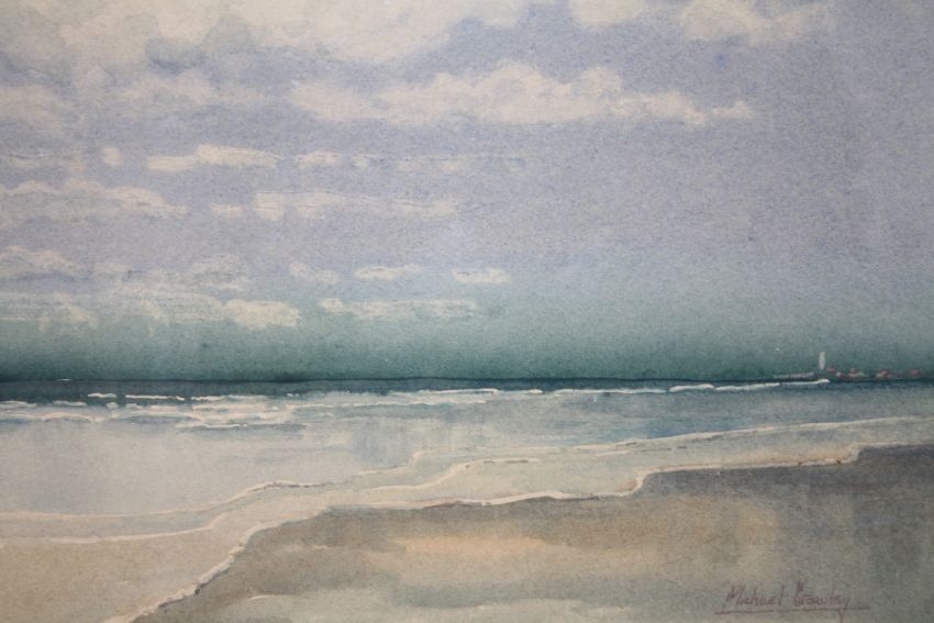 MICHAEL CRAWLEY (XX) ENGLISH SCHOOL. Coastal scene 'Martha's Vineyard Massachusetts' see verso, signed lower right, watercolour, framed and glazed, 25 x 33 cm