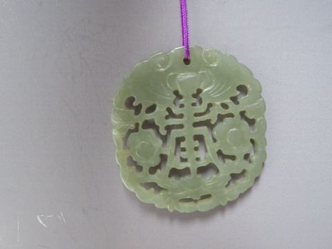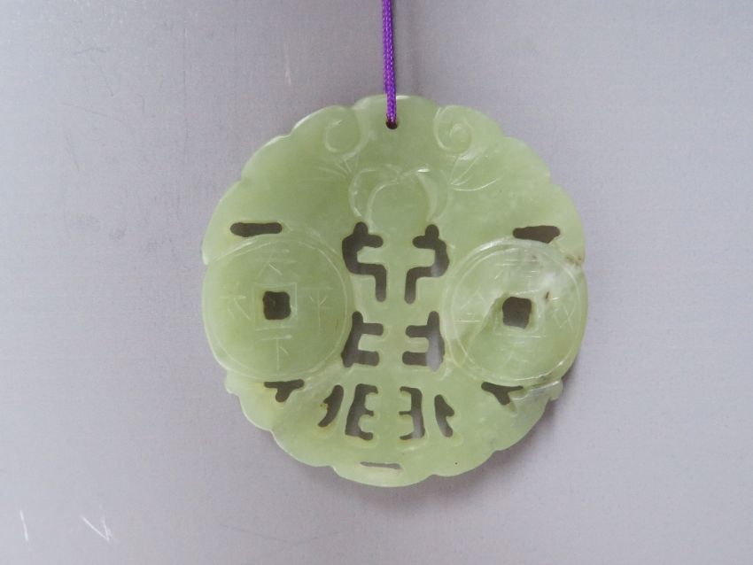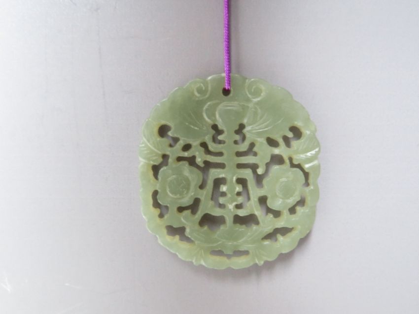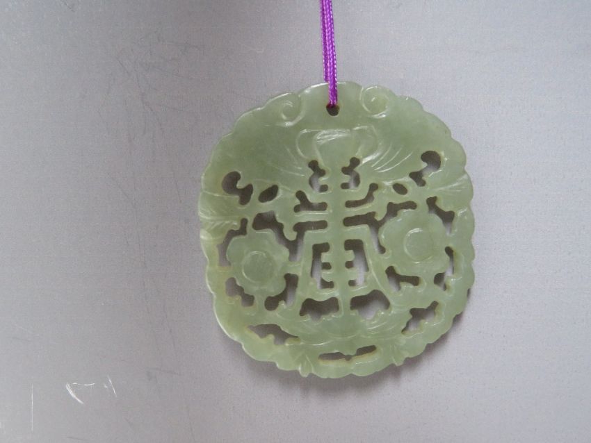 TWO CHINESE JADE CARVED AND PIERCED CIRCULAR PENDANTS, both with typical pierced carved decoration, largest Dia. 5.3 cm (2)