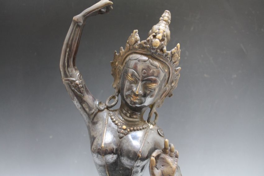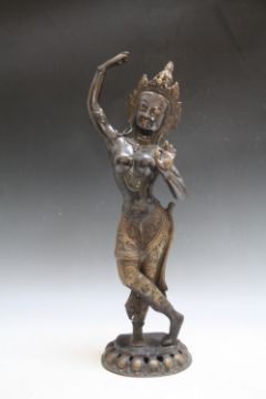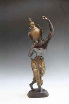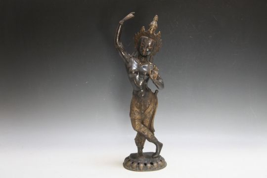 A CAST METAL GILT AND BRONZED ORIENTAL FIGURE OF A DEITY, H 53 cm