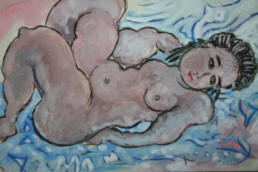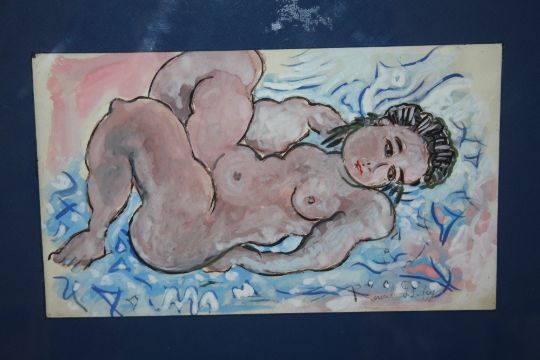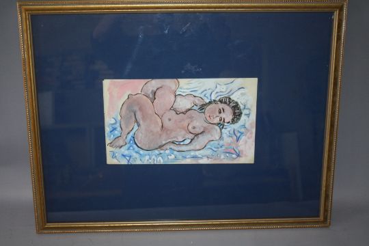 AFTER RAOUL DUFY (1877-1953). French school, reclining female nude, bears signature lower right, watercolour and gouache on paper, framed and glazed, 18 x 31 cm