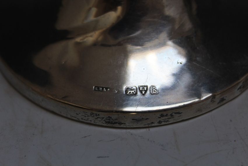 A PAIR OF HALLMARKED SILVER CANDLESTICKS BY S BLANCKENSEE & SON LTD - CHESTER 1927, in an Arts & Crafts style, having filled bases, H 14.25 cm