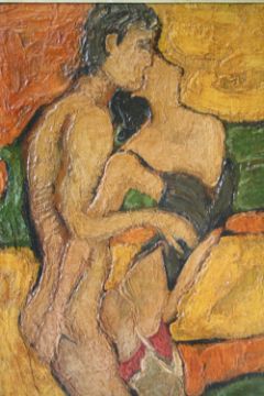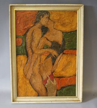 BLONDEL (XX). Impressionist study of a male and female embracing, signed lower right, oil on canvas, framed, 50 x 35 cm