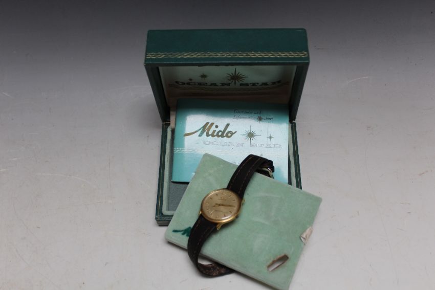 A MIDO OCEAN STAR POWER WIND WRIST WATCH, with original box and guarantee, Dia 3.5 cm