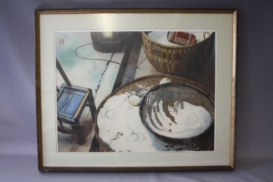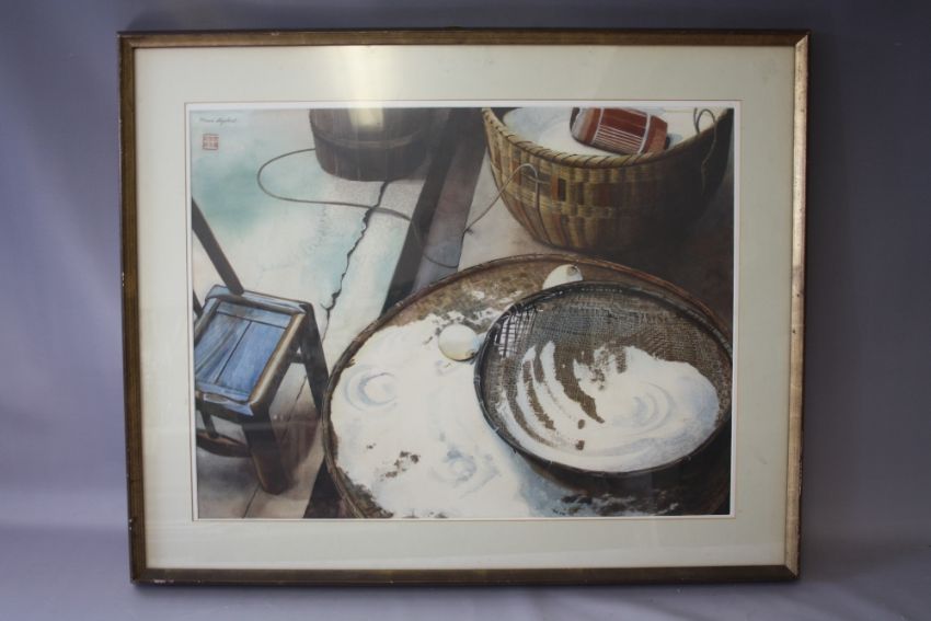 MARIE SHEPHERD (XX). Still life study of various kitchen items, signed and bearing Oriental character mark upper left, watercolour, framed and glazed, 55 x 73 cm