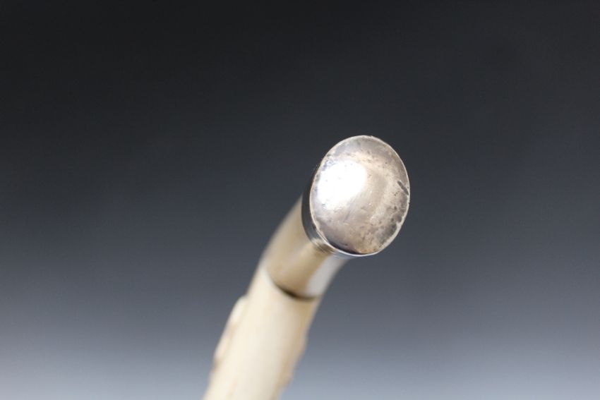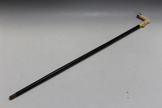AN ANTIQUE CARVED IVORY HANDLED CARVED STAG HANDLED WALKING CANE, circa mid to late 19th century, L 88 cm