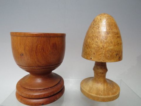 A COLLECTION OF TREEN ITEMS, various styles and periods, to include a pepper / spice grinder etc. (6)