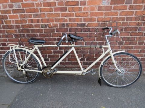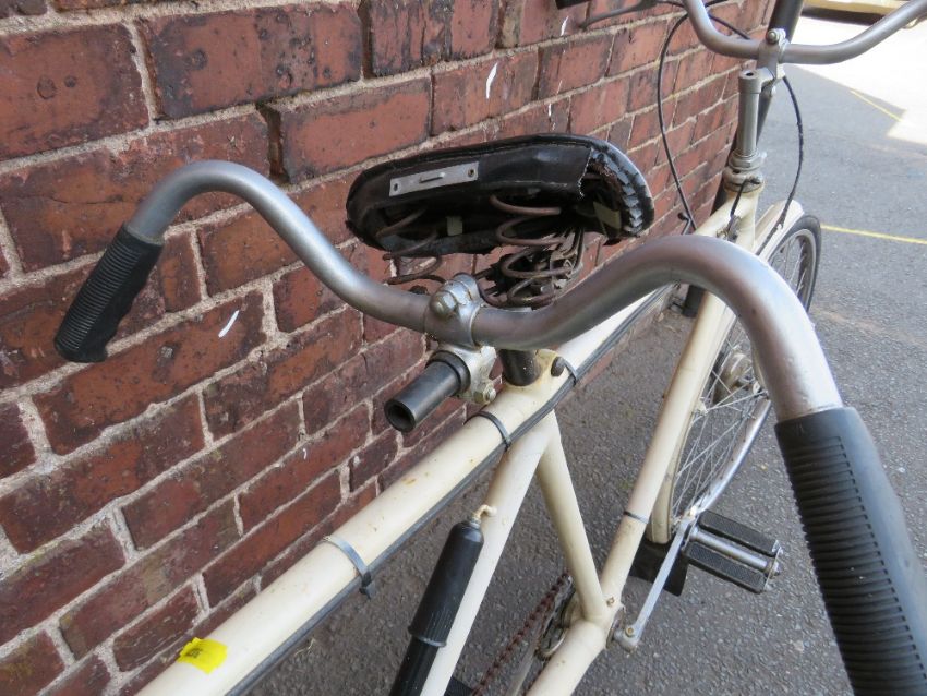 AN EARLY TO MID 20TH CENTURY VINTAGE 'PETREL' TANDEM BICYCLE, with cream coachwork