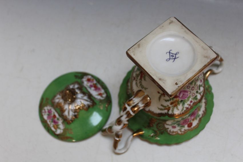 A CONTINENTAL STYLE TWIN HANDLED LIDDED VASE, W 23 cm
