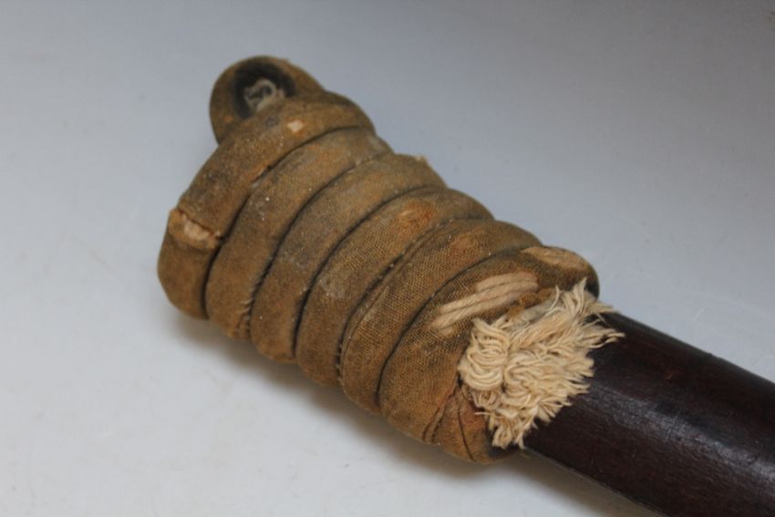 A VINTAGE BURMESE DHA IN WOODEN SCABBARD, length of blade 59 cm overall L 82 cm