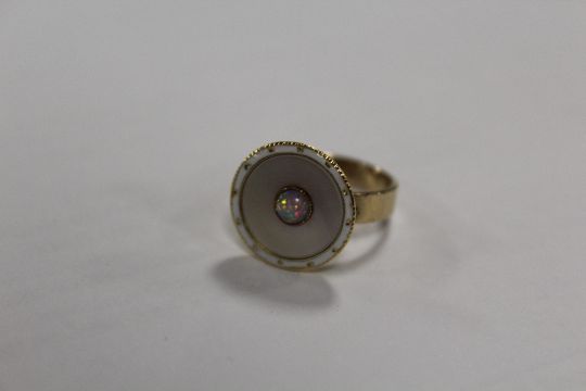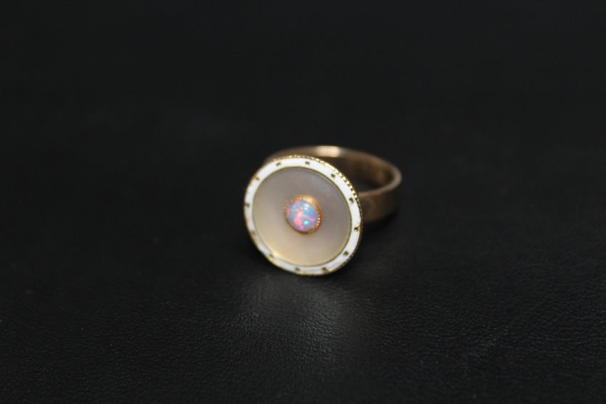 AN UNUSUAL 9CT MOTHER OF PEARL AND OPAL RING, approx weight 3.2g, ring size G 1/2