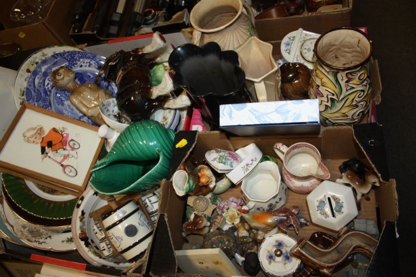 THREE TRAYS OF ASSORTED CERAMICS TO INCLUDE MINTON, SPODE AND PORTMEIRION