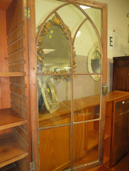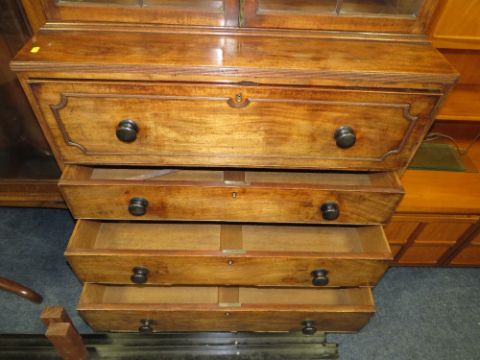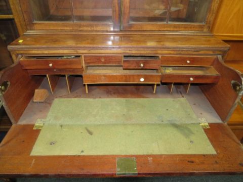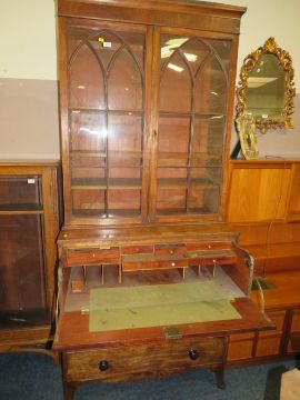A REGENCY MAHOGANY GLAZED SECRETAIRE BOOKCASE H-228 W-103 CM