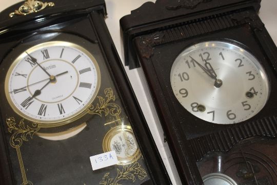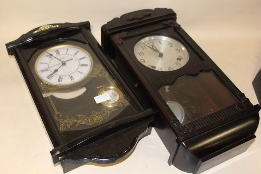 TWO WALL CLOCKS, TO INCLUDE A PLASTIC EXAMPLE
