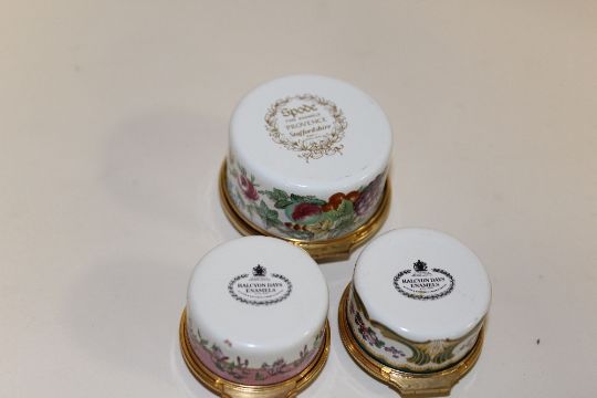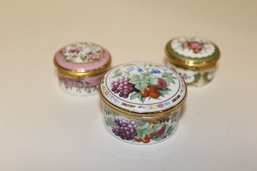 TWO HALCYON DAYS ENAMEL PILL BOXES TOGETHER WITH A SPODE PROVENCE EXAMPLE (3)