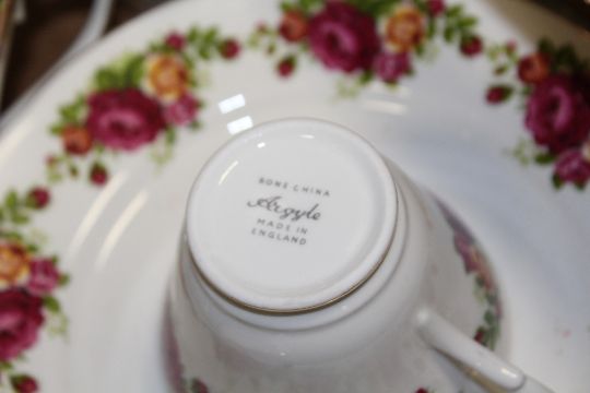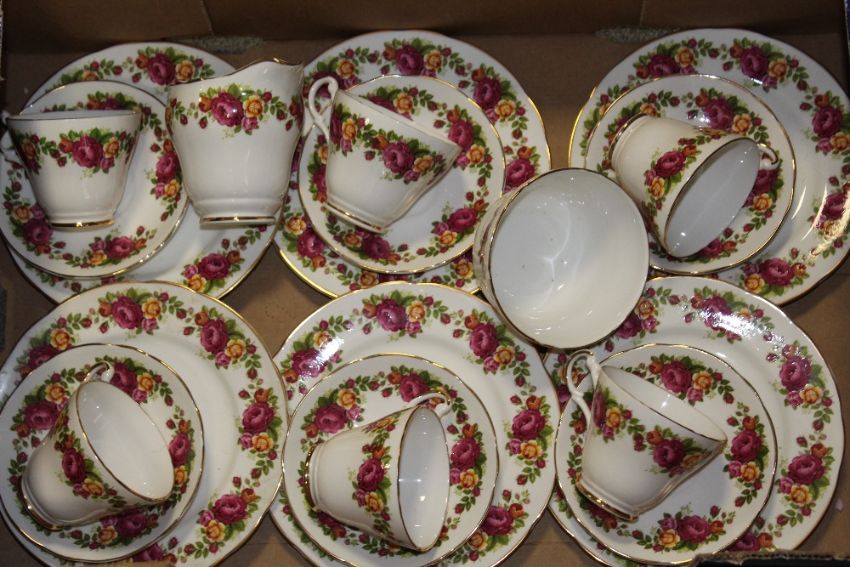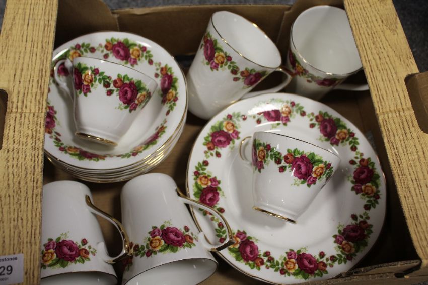 TWO BOXES OF ARGYLE ROSE PATTERN CUPS AND SAUCERS ETC.