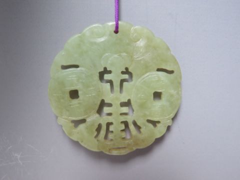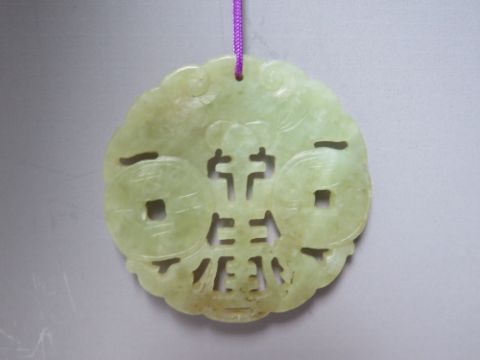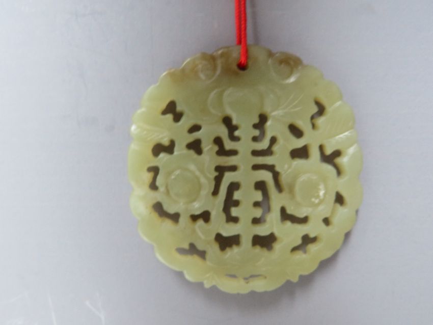 TWO CHINESE JADE CARVED AND PIERCED CIRCULAR PENDANTS, both with typical pierced carved decoration, largest Dia. 5.5 cm (2)